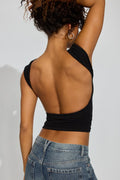 A modern take on the everyday tee. The Aria Backless Top features a clean boat neckline and a softly ruched open back for subtle shape. Designed with a fitted, cropped silhouette that’s simple, flattering, and easy to style from day to night.